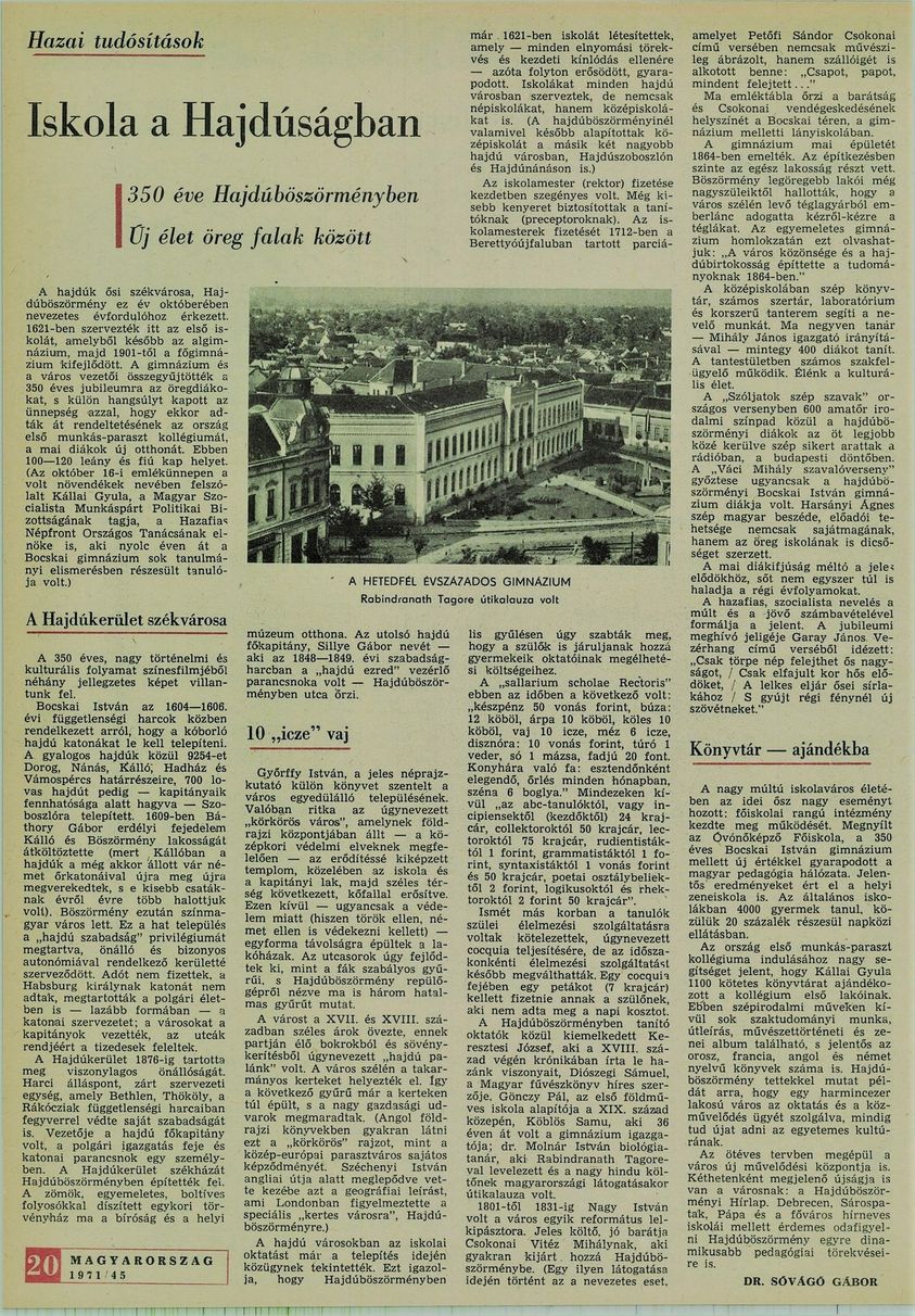 Bővebben: Chronologie des István Bocskai Gymnasiums in Hajdúböszörmény, 1621 - 2021